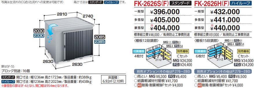 イナバ FK-2626S スタンダード フォルタ 一般型 屋根傾斜変更物置(関西限定商品)
