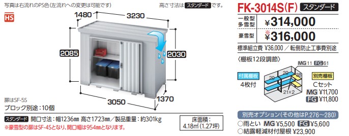 イナバ FK-3014S スタンダード フォルタ 一般型多雪型 屋根傾斜変更物置(関西限定商品)