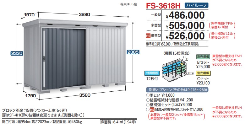 イナバ FS-3618H ハイルーフ フォルタ 一般型 中型物置(関西限定商品)