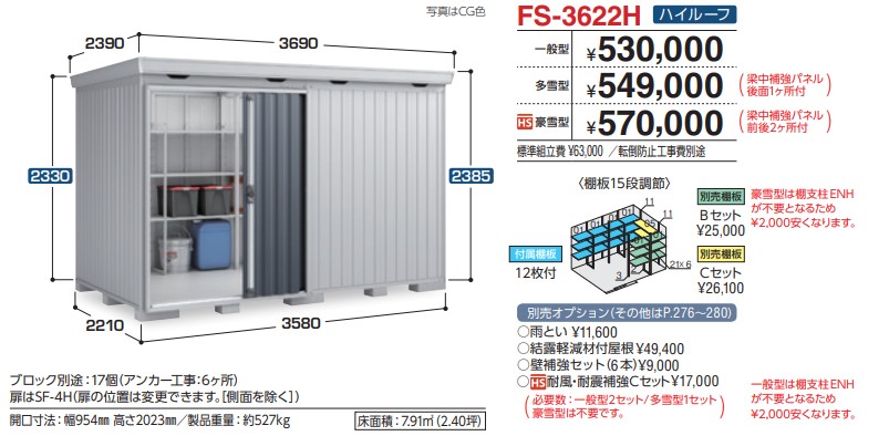 イナバ FS-3622H ハイルーフ フォルタ 一般型 中型物置(関西限定商品)