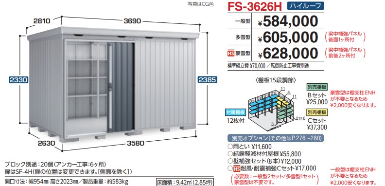 イナバ FS-3626H ハイルーフ フォルタ 一般型 中型物置(関西限定商品)