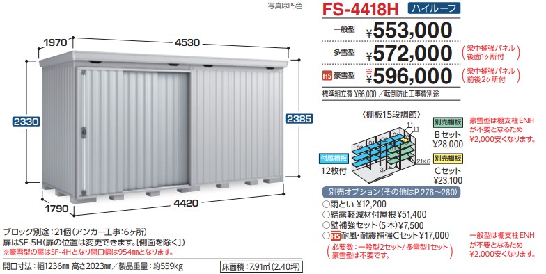 イナバ FS-4418H ハイルーフ フォルタ 一般型 中型物置(関西限定商品)