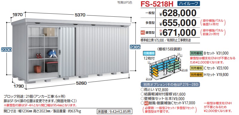 イナバ FS-5218H ハイルーフ フォルタ 一般型 中型物置(関西限定商品)