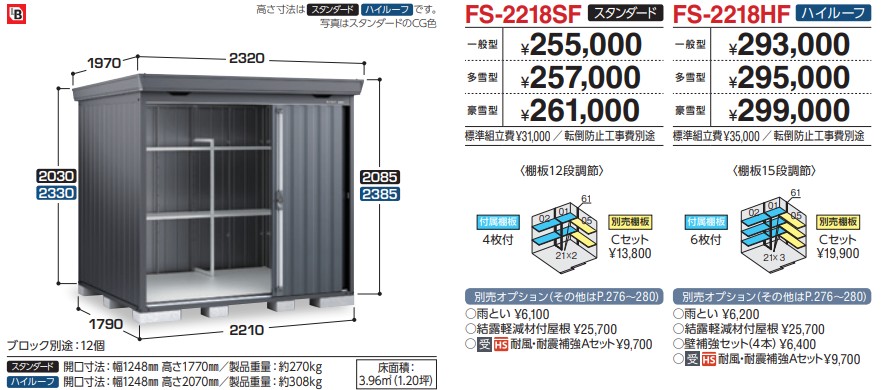 イナバ FS-2218SF スタンダード 一般型 フォルタ 中型物置(関西限定商品)