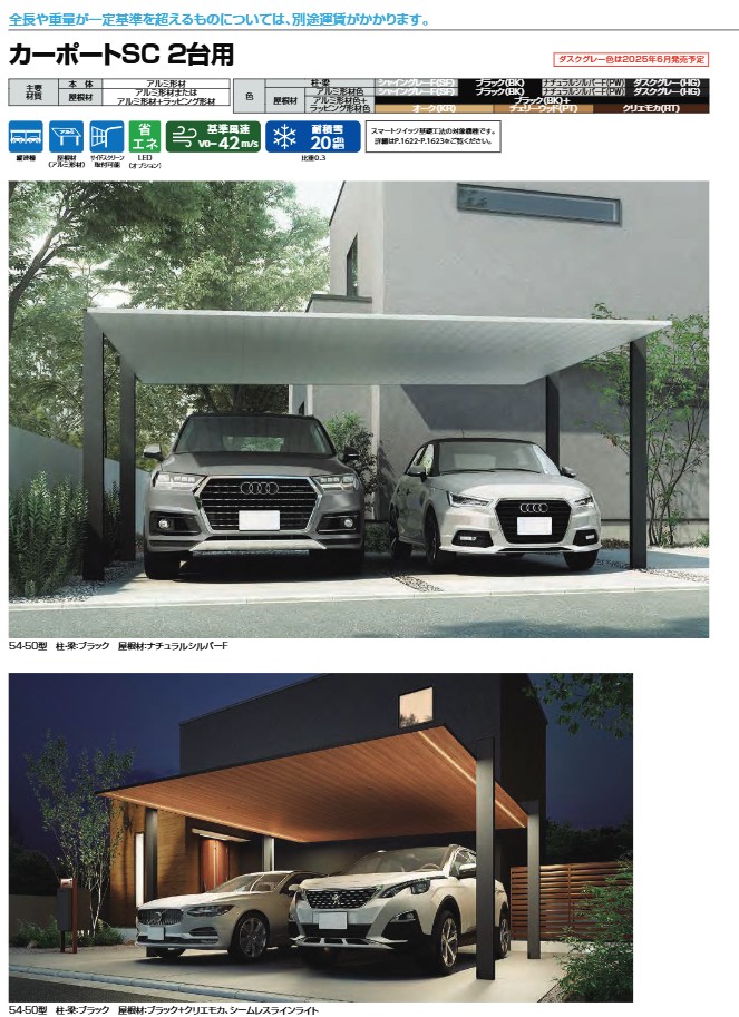 リクシル カーポートSC 2台用 基本 60-50型 ロング柱(H25)ラッピング形材色(木目調)(関西限定商品)