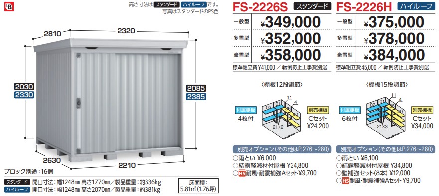 イナバ FS-2226H ハイルーフ 一般型 フォルタ 中型物置(関西限定商品)