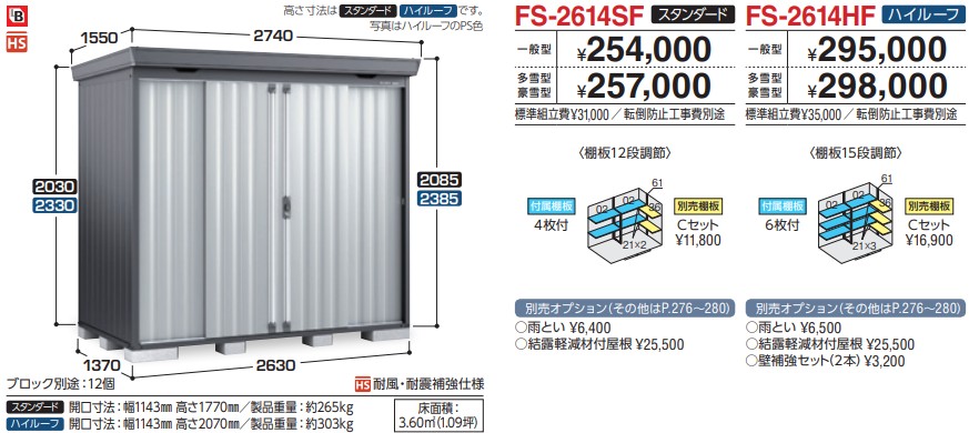 イナバ FS-2614HF ハイルーフ 一般型 フォルタ 中型物置(関西限定商品)