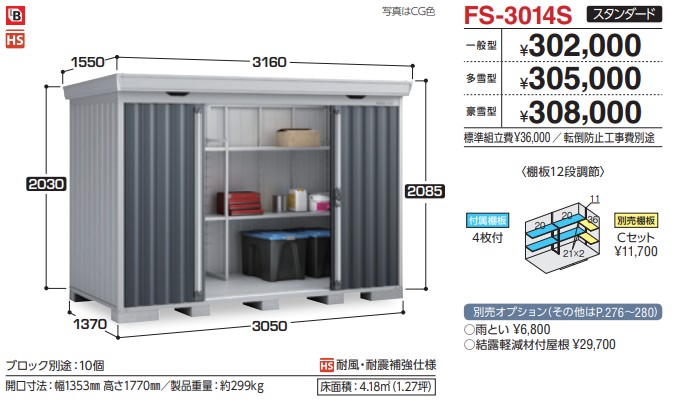 イナバ FS-3014S スタンダード 一般型 フォルタ 中型物置(関西限定商品)