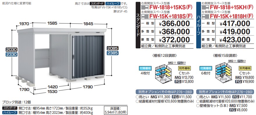 イナバ FW-1818+15KH ハイルーフ 一般型 右側開放スペース フォルタ ウィズ(関西限定商品)