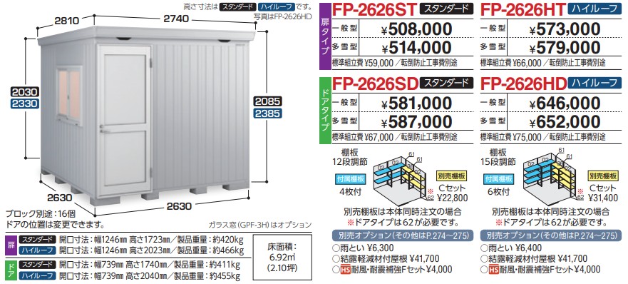 イナバ FP-2626HT 扉タイプ ハイルーフ フォルタプラス 一般型 断熱材付物置(関西限定商品)